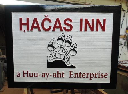 Haida First Nation Tourism Bamfield Vancouver Island BC Canada.Custom made sandblasted cedar sign by Condor signs Vernon BC.